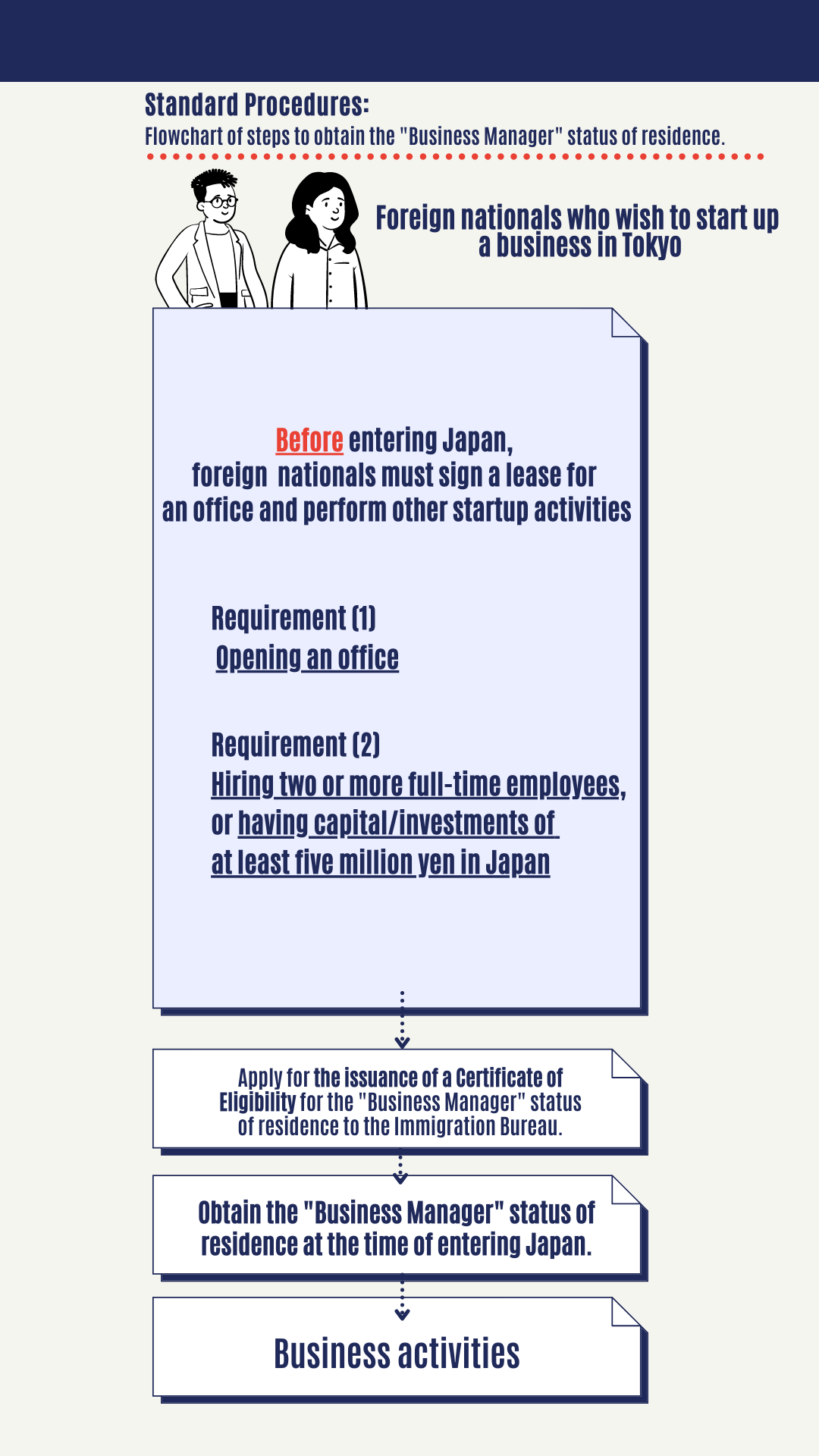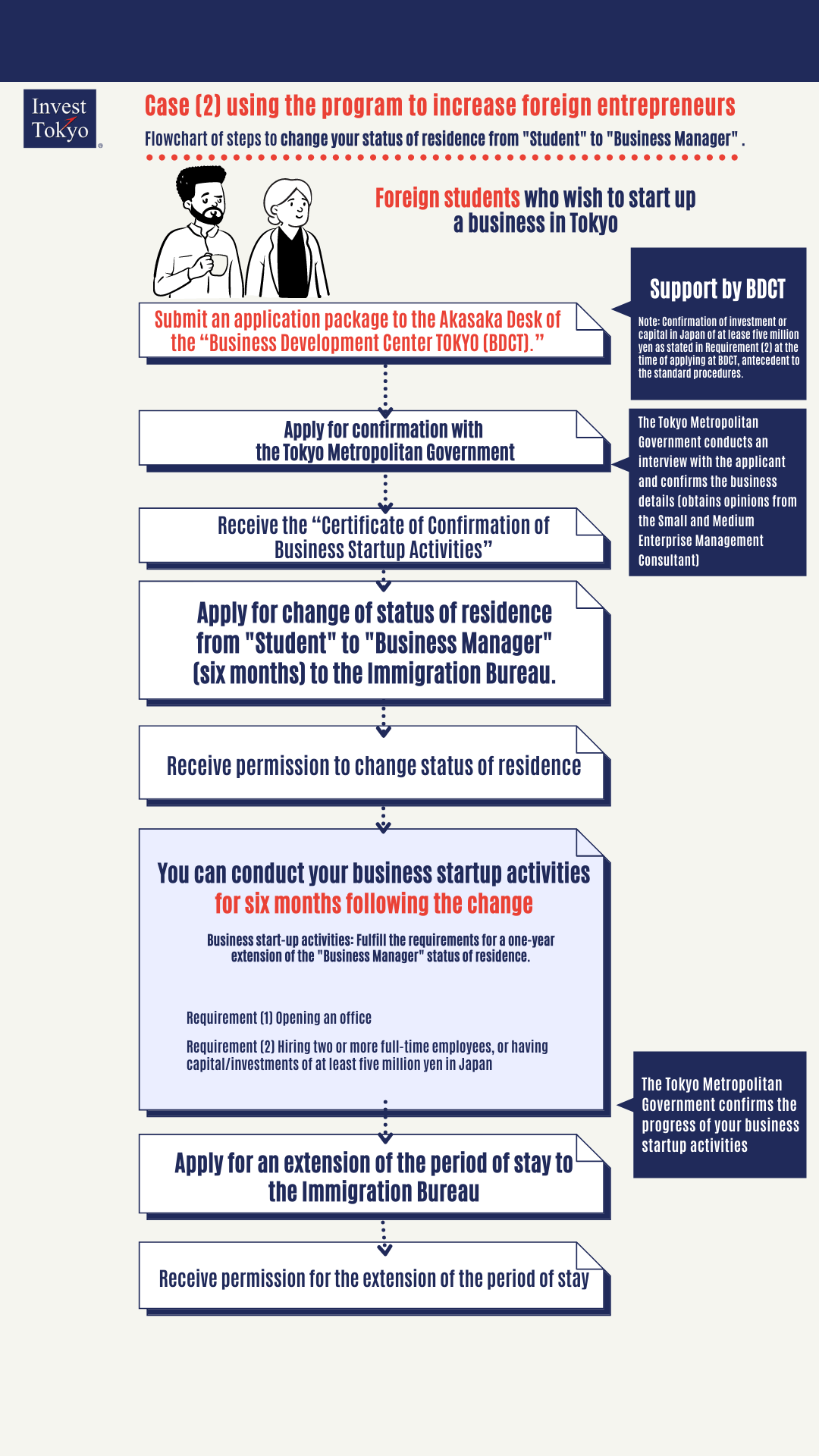 Since applicants only need to fulfill requirements for the one-year extension of the "Business Manager" status of residence within six months, they can smoothly conduct preparatory activities.